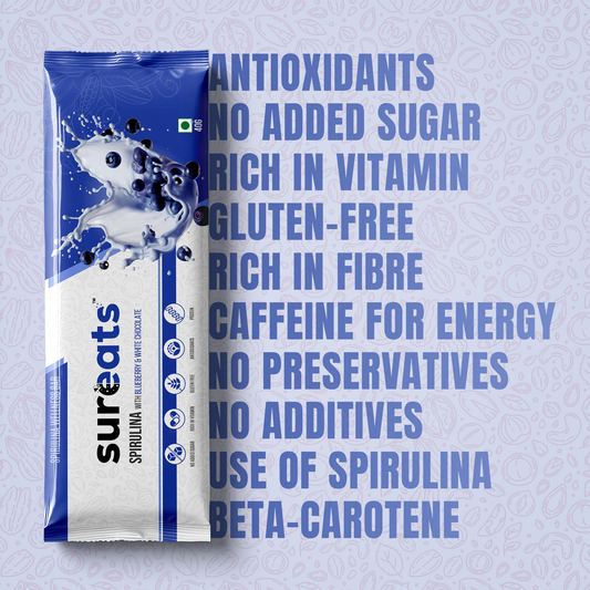 Spirulina Wellness Bar | Blueberry and White Chocolate | 6 x 40g each - Pack of 6