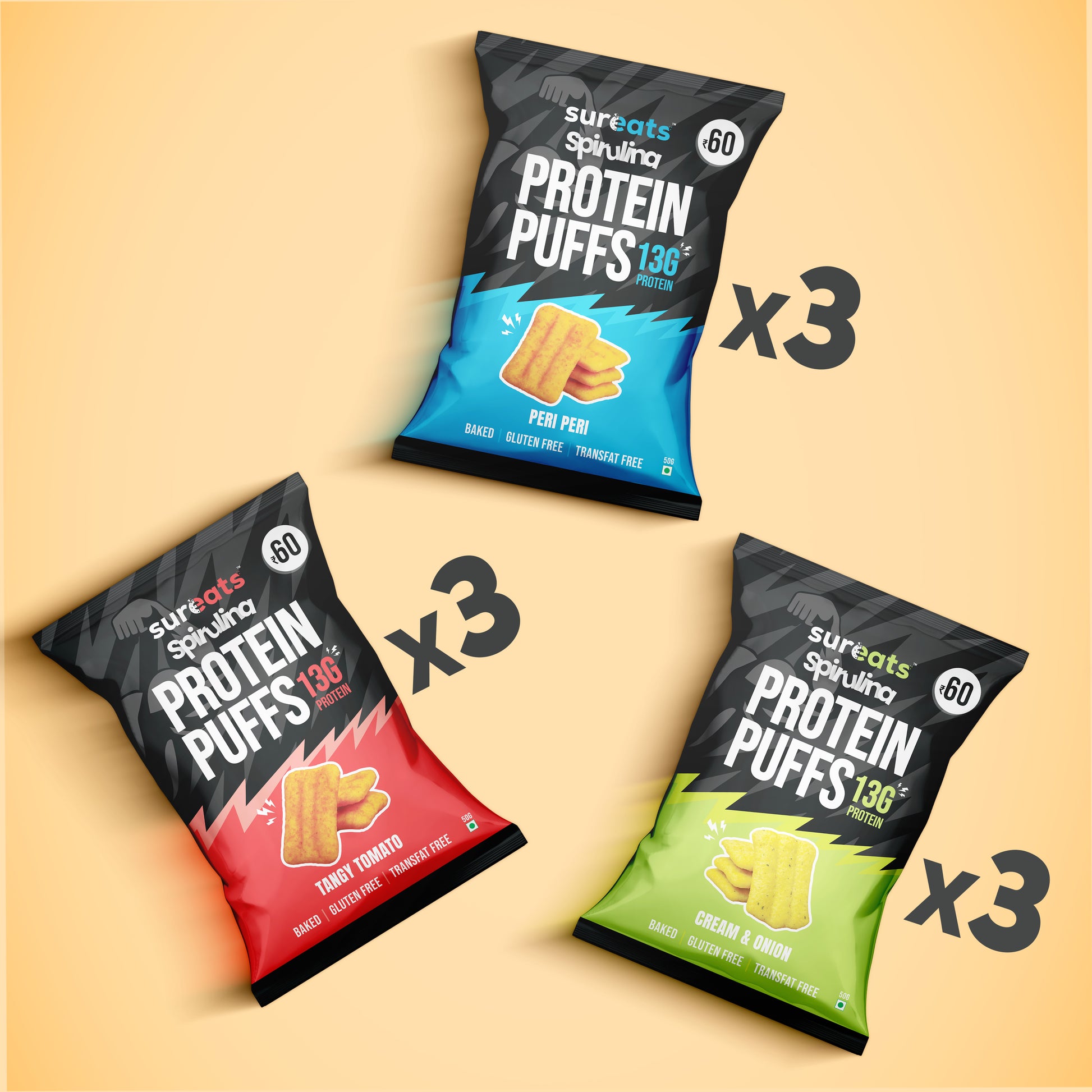 Mixed Pack of 9 | 3 x Peri Peri, 3 x Cream and Onion, 3 x Tangy Tomato